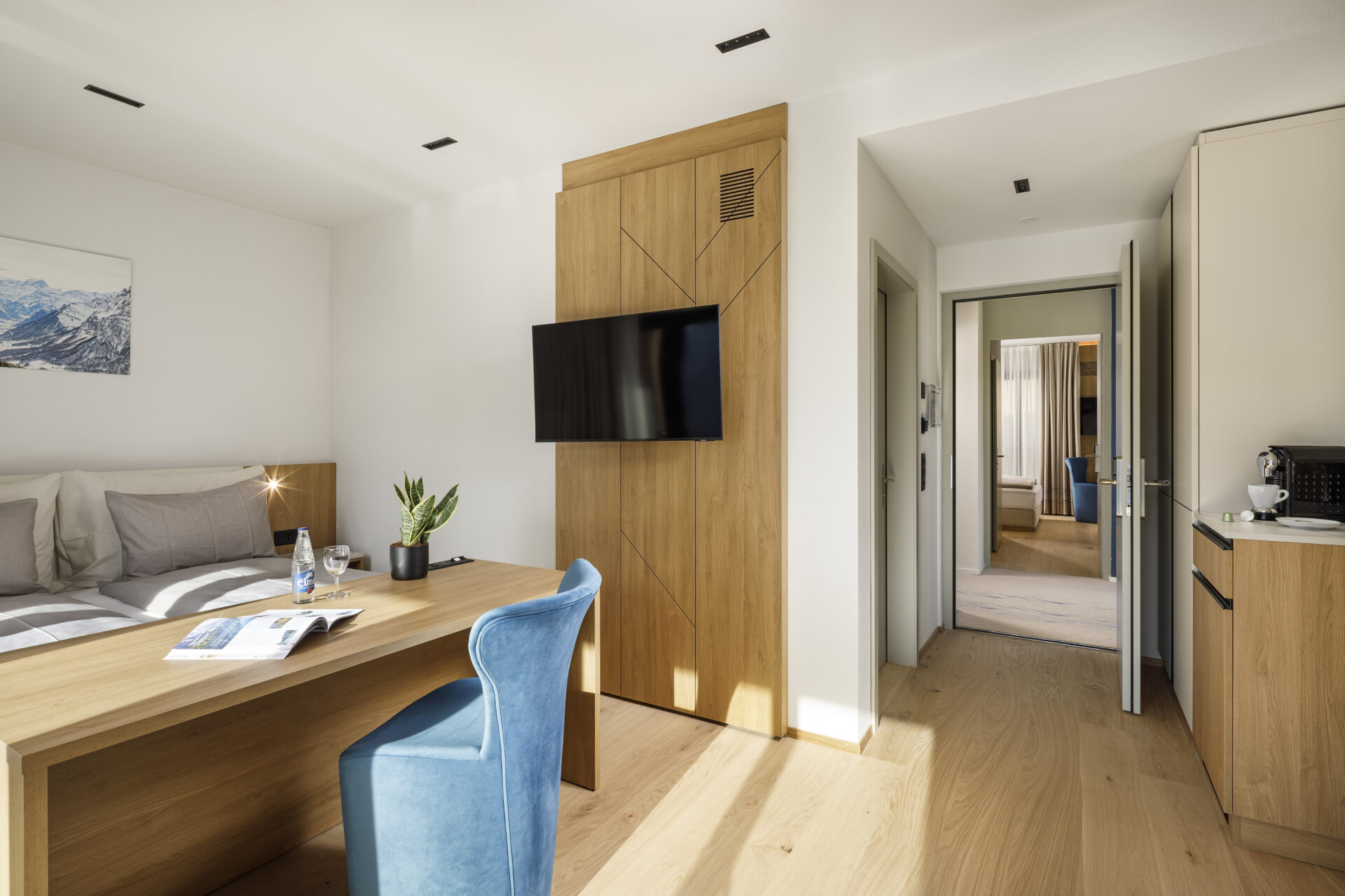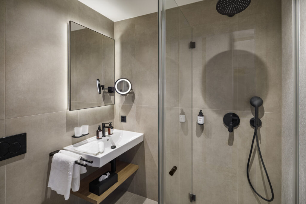 We have ten rooms of this type. Four of them can be connected with a Panorama Double Room to create a family suite, comfortably sleeping two adults and up to three children.